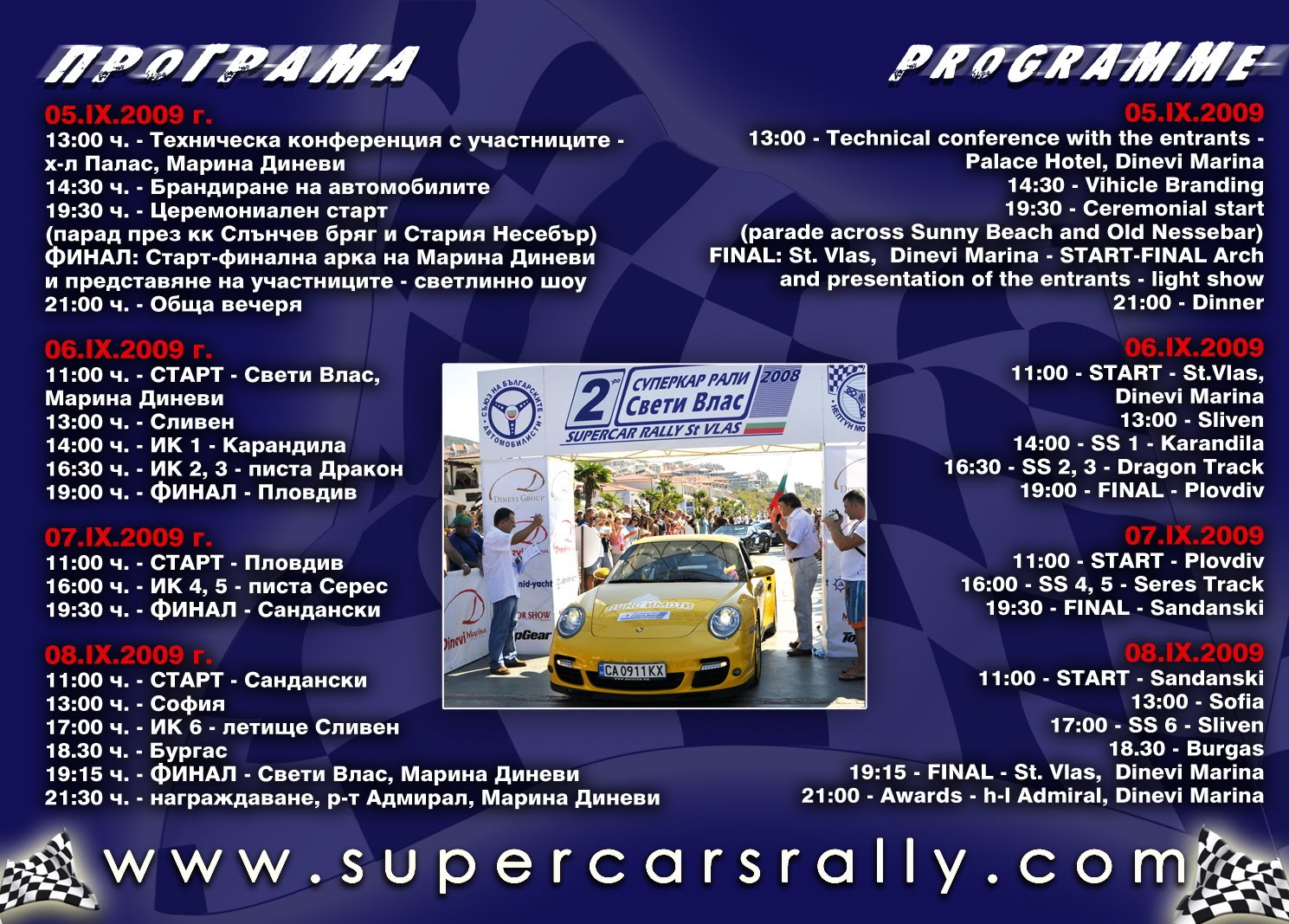 Официалното представяне е утре, а стартът – в събота в Свети Влас. Кулминацията ще бъде на 8-и, вторник, от 13 ч пред хотел „Шератън“ в София, където участниците и суперколите ще бъдат представени и увековечени заедно с модели на списание FHM. Финалът е същата вечер, 8 септември, в Свети Влас.
