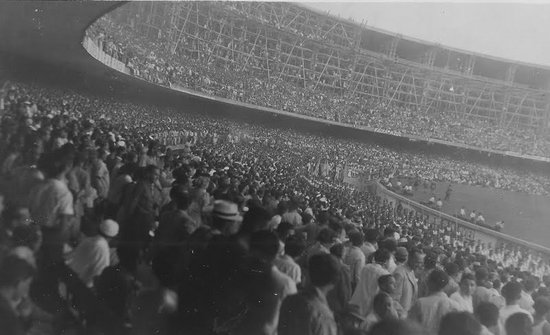 >200 000 >Публиката на (все още недовършения напълно) стадион „Маракана“ в Рио де Жанейро по време на откриването си през 1950 година Сподели това:Сподели Share on X(Отваря се в нов прозорец) X Share on Facebook(Отваря се в нов прозорец) Facebook Споделяне в Tumblr(Отваря се в нов прозорец) Tumblr Share on Pocket(Отваря се в нов прозорец) Pocket Харесвам Зареждане... Вашият коментар Отказ Δ
