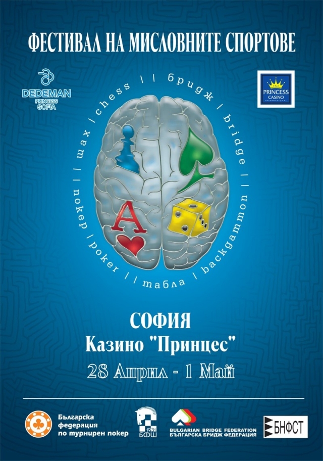 Фестивал на мисловните спортове (ФМС), включващ турнири по спортен бридж, табла, покер и сеанс по шах, ще се проведе за първи път у нас в края на месеца. Домакин на събитието между 28 април и 1 май ще бъде столичният хотел „Дедеман“ и тамошното казино „Принцес“. Организатор е Българската федерация по турнирен покер заедно с федерациите по шах, табла и бридж.