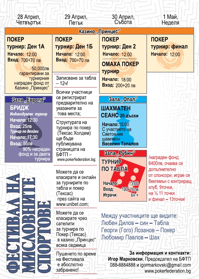 За всякаква друга информация или въпроси следете сайта на БФТП – www.pokerfederation.bg