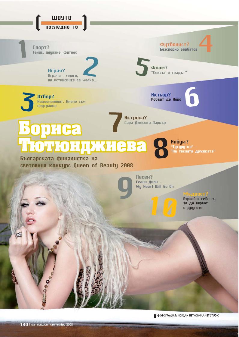 Днес ослепителната блондинка е петата гостенка в рубриката на сайта “Бъдещи звезди” след Магдалена Иванова, Деница Калчева, Гергана Станчева и Деница Стоянова.