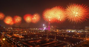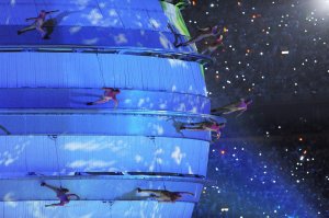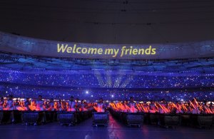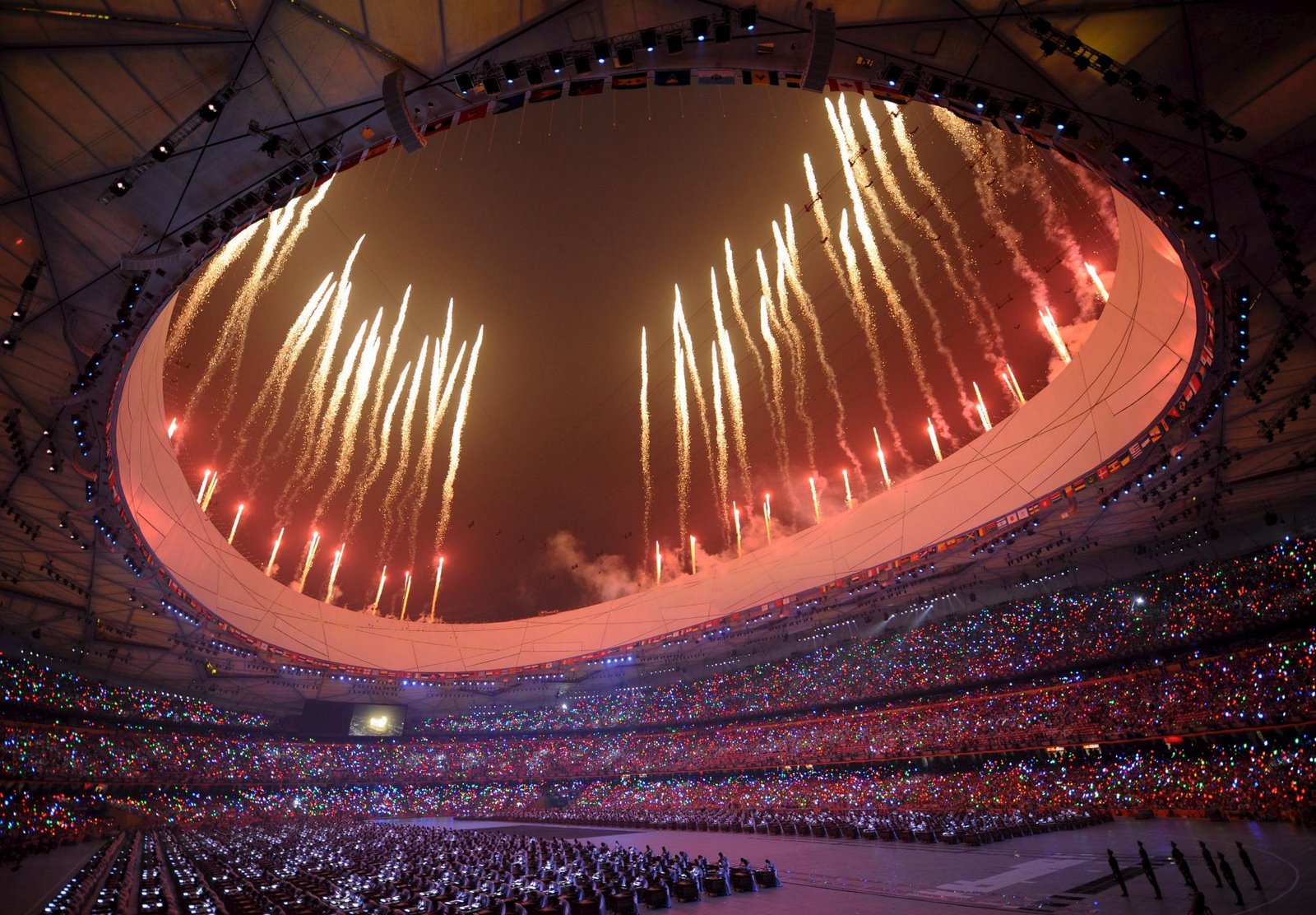 Реклама на Coca Cola за игрите в Пекин и новия Олимпийски стадион, чиято конструкция наподобява птиче гнездо