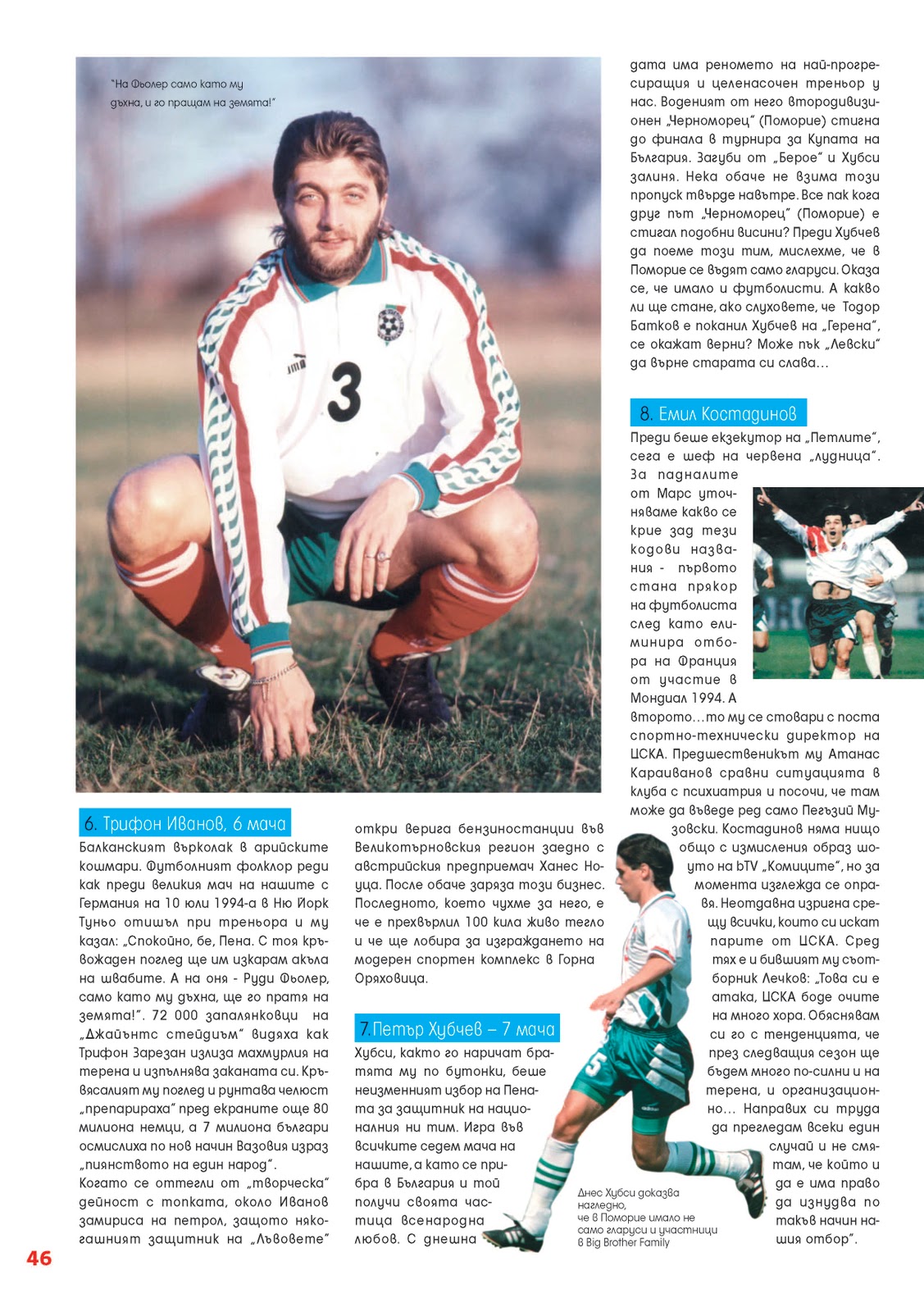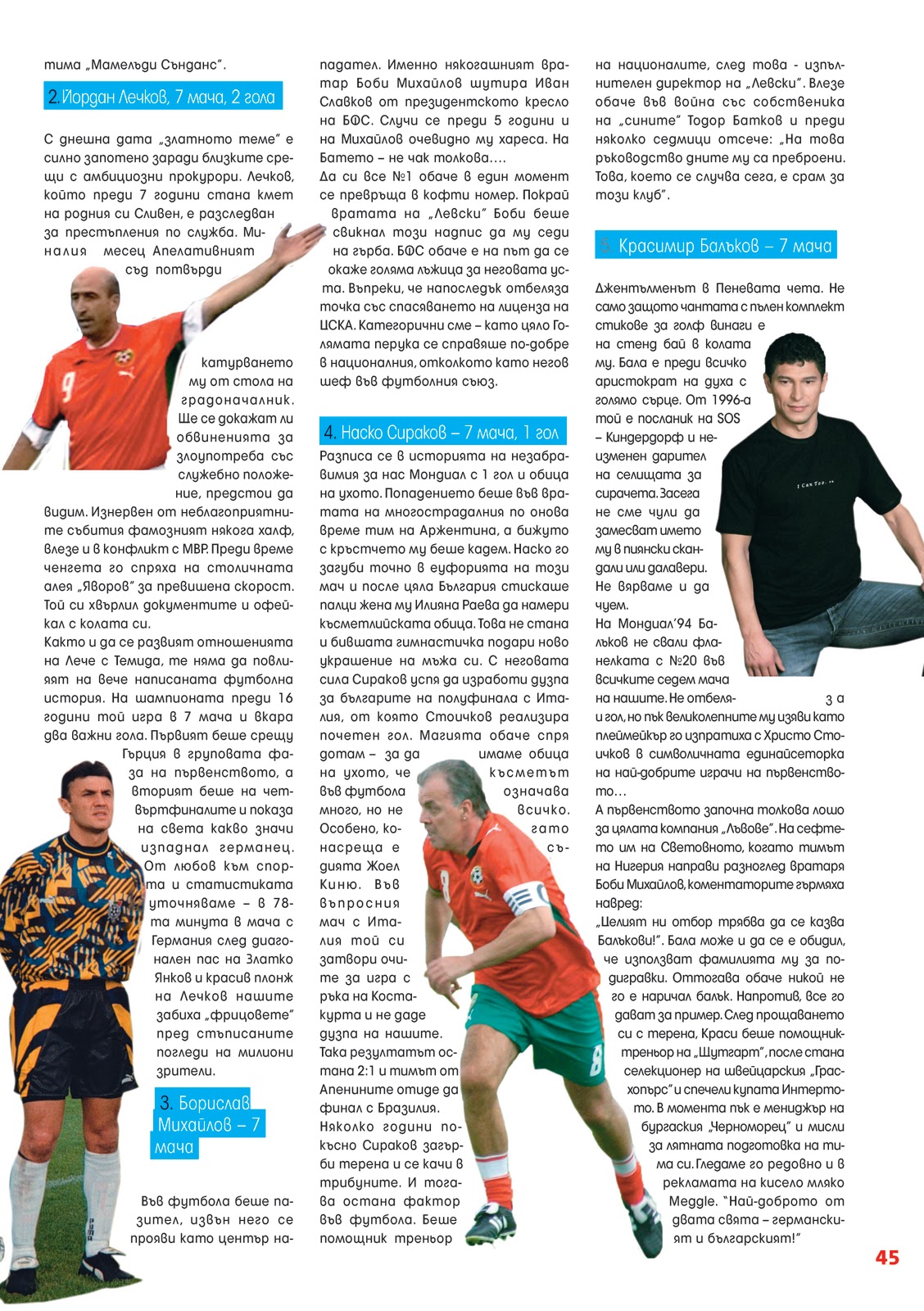 Тези, които играят в момента за националния отбор, не стават дори за носачи на чантите на нашия тим, който стигна до четвъртото място в САЩ. Много е трудно да намериш играчи като Йордан Лечков и Красимир Балъков. Е, все пак ние можехме да намерим някакво място на пейката за Димитър Бербатов.